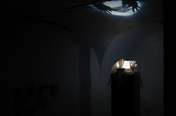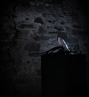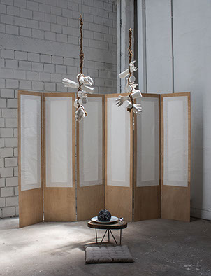 2016, Installation with ceramic, fabric, objects, light in two rooms