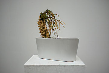 2018, Sculpture with wood, planting pot, moss and soil, 40 x 35 x 16 cm